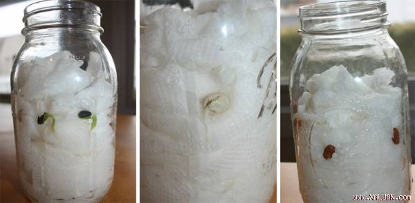 Với cách này, bạn sẽ không cần ngâm hạt giống hay tốn tiền mua viên nén ươm hạt, túi bầu nữa. Vật liệu chuẩn bị cực đơn giản, chỉ cần khăn giấy (giấy ăn), lọ đựng trong suốt và hạt giống. Đầu tiên, bạn cho giấy vào lọ, bỏ hạt giống vào và tránh để hạt rơi xuống đáy bình. Dùng bình xịt phun ẩm rồi đặt ở nơi thoáng mát, tránh nắng gắt trực tiếp. Những ngày tiếp theo chỉ việc kiểm tra độ ẩm và chờ hạt nảy mầm thôi đấy!