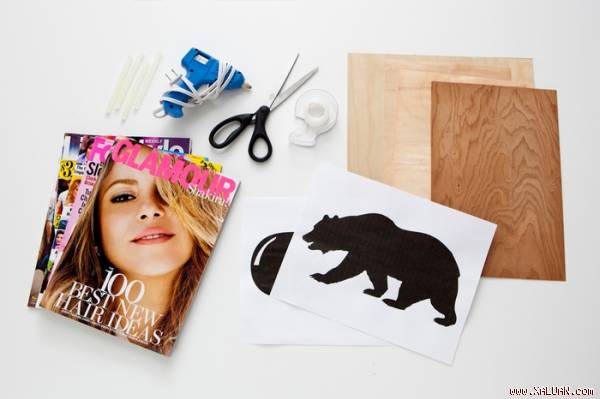 Tiếp tục dùng keo bắn nóng, ta dán hình con gấu lên tấm gỗ mỏng, hoặc khung trang trí tùy theo ý thích của bạn.
