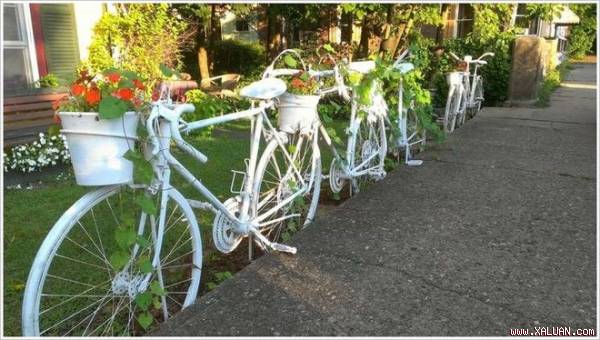 Những chiếc xe đạp cũ thế này cũng trở nên vô cùng ấn tượng khi dùng để trang trí ngoại thất cho nhà bạn.
