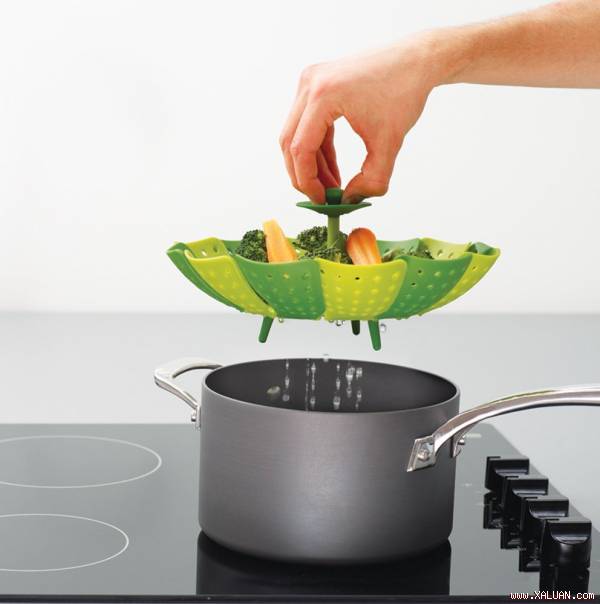 Chiếc rổ giúp bạn luộc rau củ nhanh chóng và tiện ích. Bạn chỉ cần xếp rau củ vào rổ, cho thẳng vào nồi nước, khi chín dùng tay nắm kéo nhẹ lên. Các lỗ nhỏ sẽ giúp làm ráo nước nhanh chóng. Khi xòe ra, nó trông giống như một bông hoa xinh xắn, “cánh hoa” được gắn kết với nhau khéo léo. Khi sử dụng xong có thể xếp lại và lưu trữ gọn gàng.